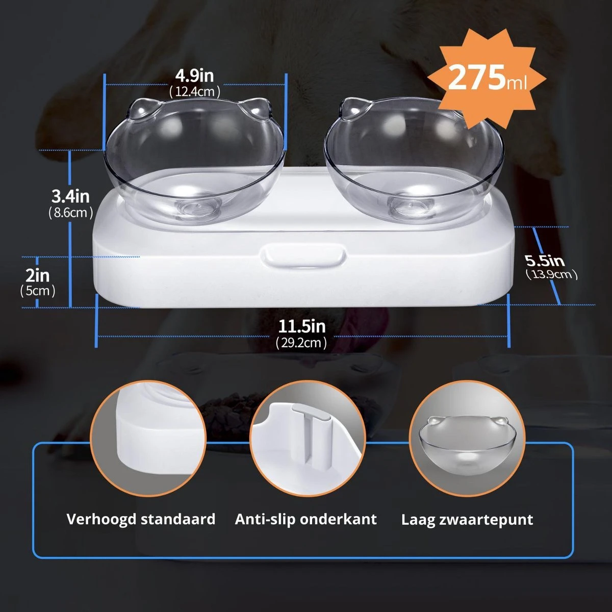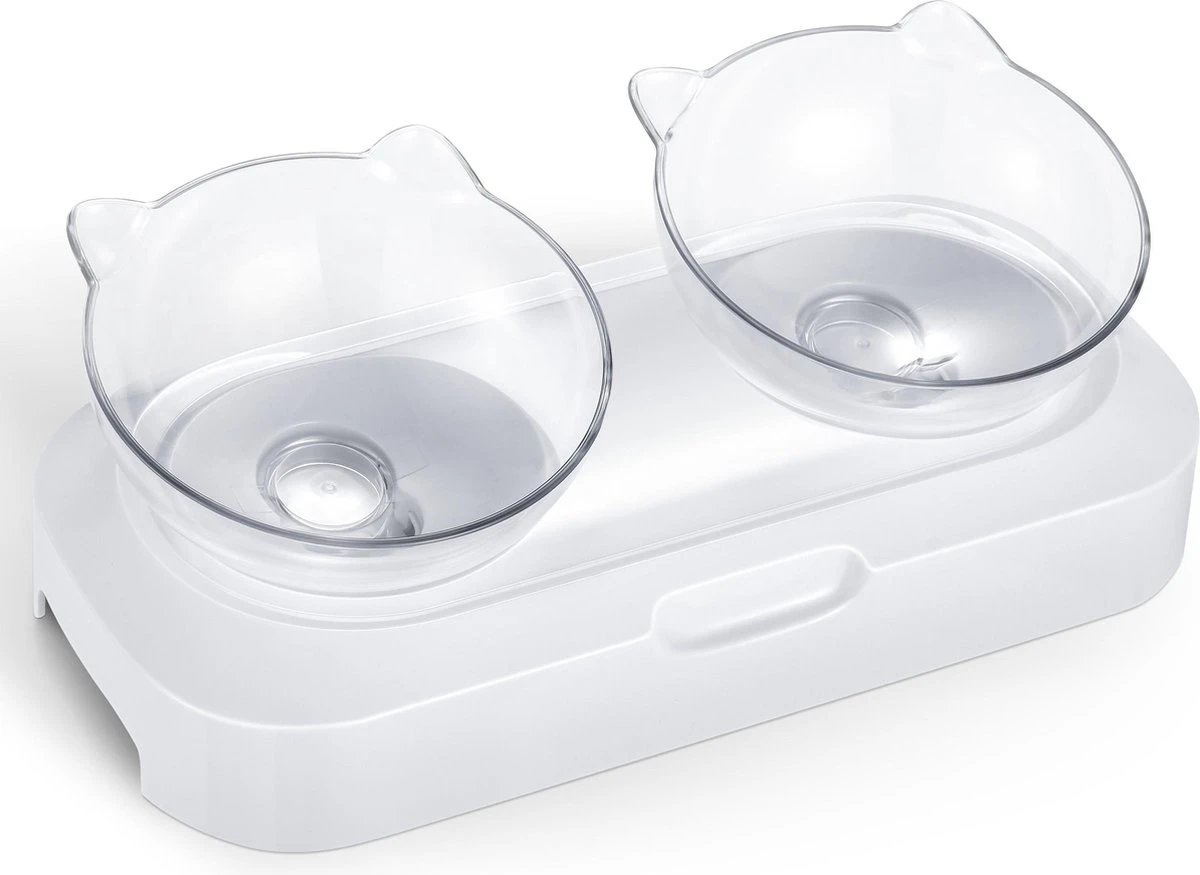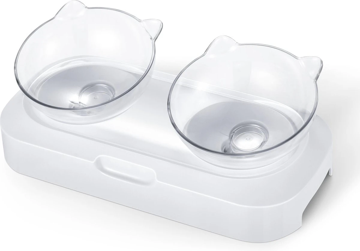 Behave Dubbele Voerbak – Drinkbak – Katten – Verstelbaar – Wit