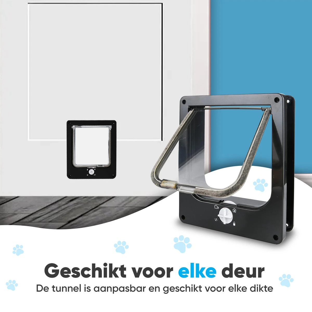 BFreshPets Kattenluik + Massageborstel – Met Tunnel – 4 Vergrendelingsstanden – Weersbestendig – Maat L – Zwart – 27 X 24 Cm