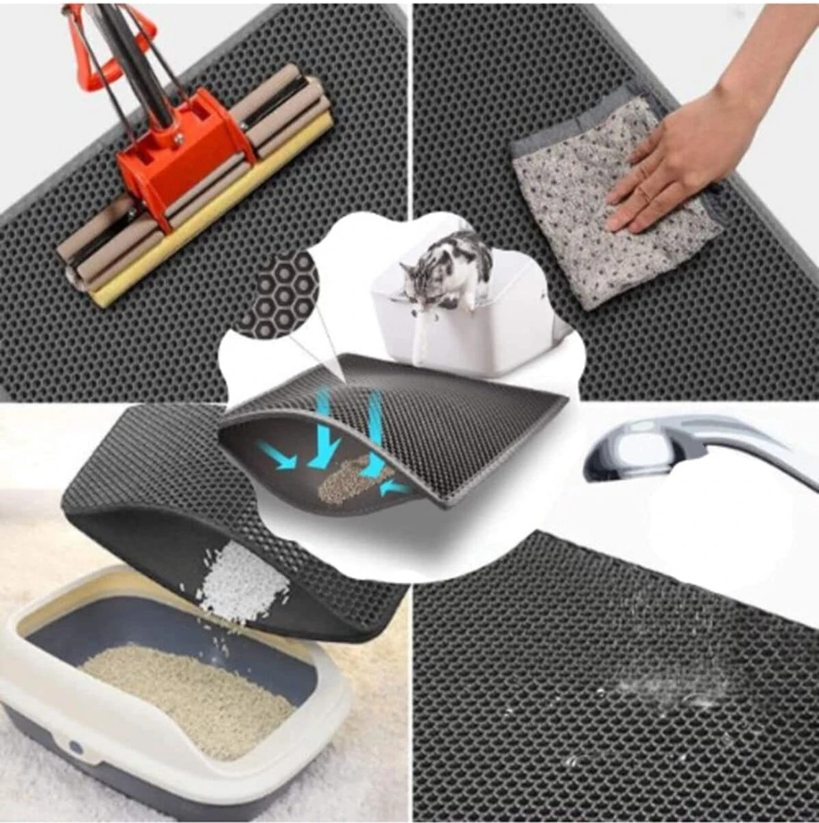 - Gebruik: je tilt de mat op en al het afval valt er door en gooit hem dan terug in het kattentoilet, zodat hij gerecycled wordt. Geen afval meer dat dagelijks aan mijn voeten plakt