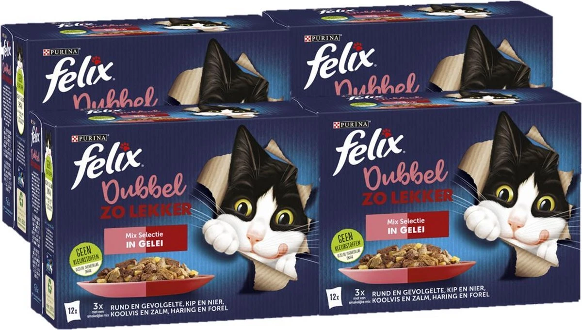 Felix Dubbel Zo Lekker Mix Selectie In Gelei – Katten Natvoer – 48 X 85g