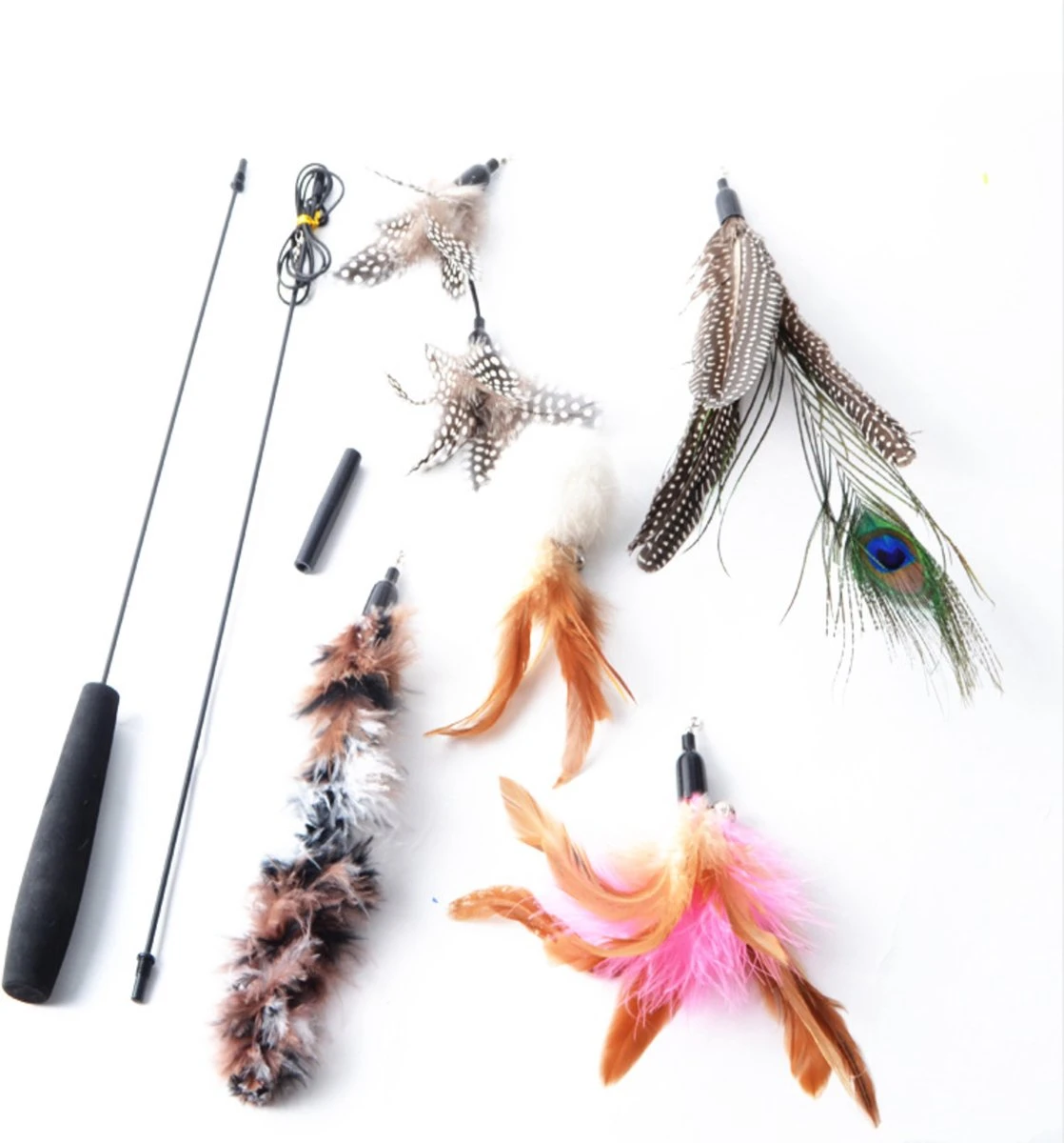 FUZLY – Kattenspeelgoed – Hengel Met Veer – Hengel Met 5 Opzetstukjes – Kattenspeeltjes – Bewegend Kattenspeelgoed- Kattenspeeltjes Intelligentie – Kattenhengel – Kattenspeeltje Interactief