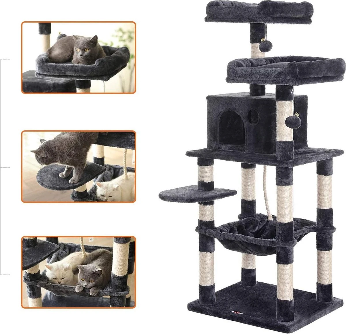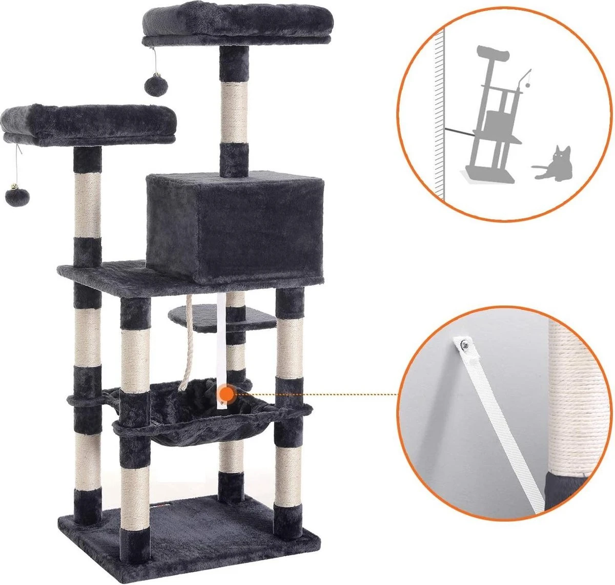 De krabpalen zijn gemaakt van dikke pluche, krasbestendige sisal en robuuste MDF-platen. De materialen van deze kattenboom zullen zelfs de meest veeleisende huiskat overtuigen!