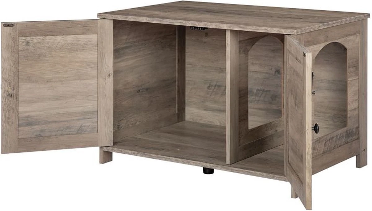 Dankzij de 2 deurtjes op het kattentoilet kunt u de kattenbak eenvoudig schoonmaken en hebt u snel toegang tot de opbergruimte. Dankzij de gemakkelijk te volgen instructies (de Engelse taal kan niet worden gegarandeerd) is dit kattenhuis gemakkelijk op te zetten.