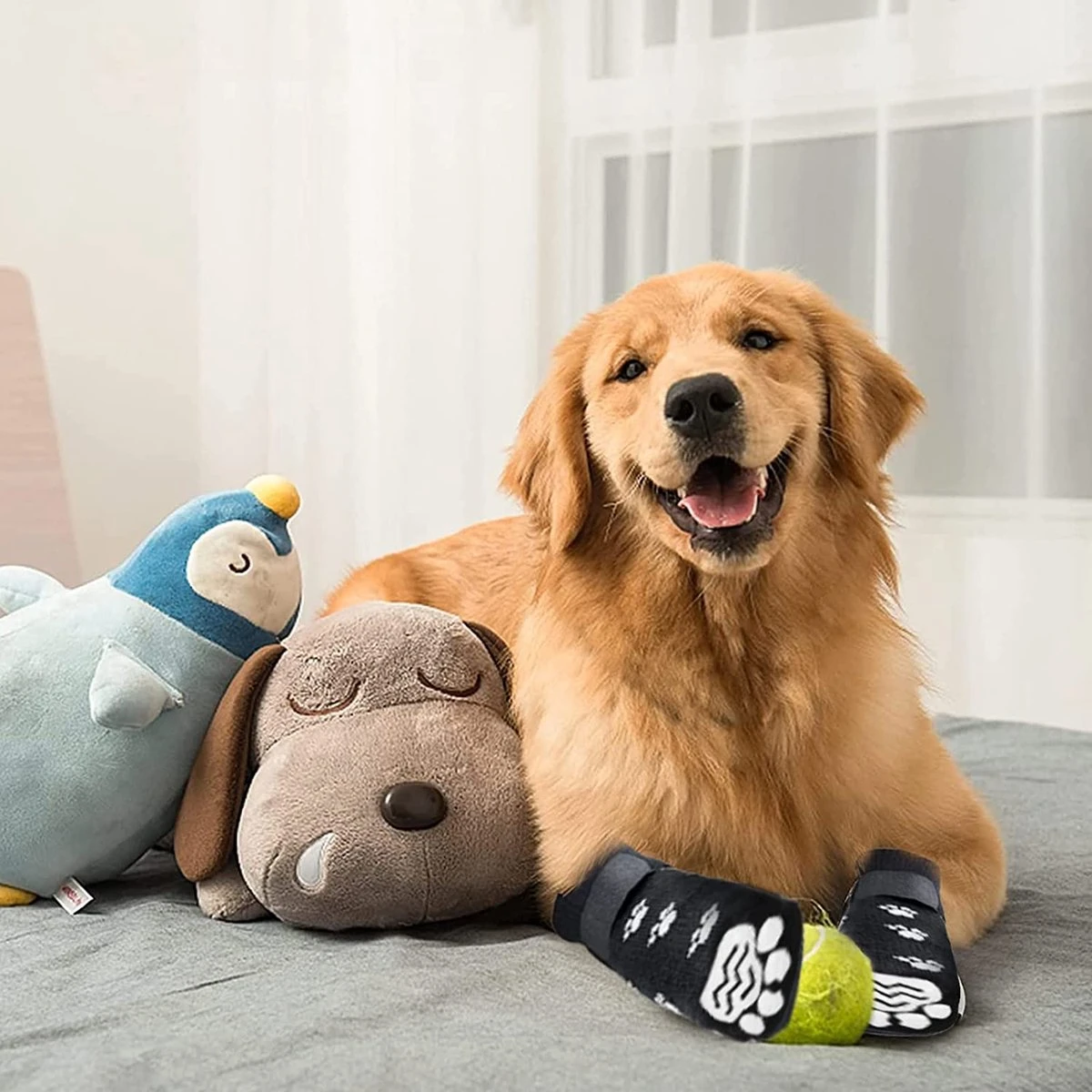 - 【Tips】: een set van 4 hondensokken, is praktisch voor dagelijkse vervanging en reiniging. Draag hondensokken antislip om je hond mooier te maken. De antislip hondensokken zijn geschikt voor verschillende gelegenheden binnenshuis en beïnvloeden de dagelijkse activiteiten van de hond na het dragen niet.