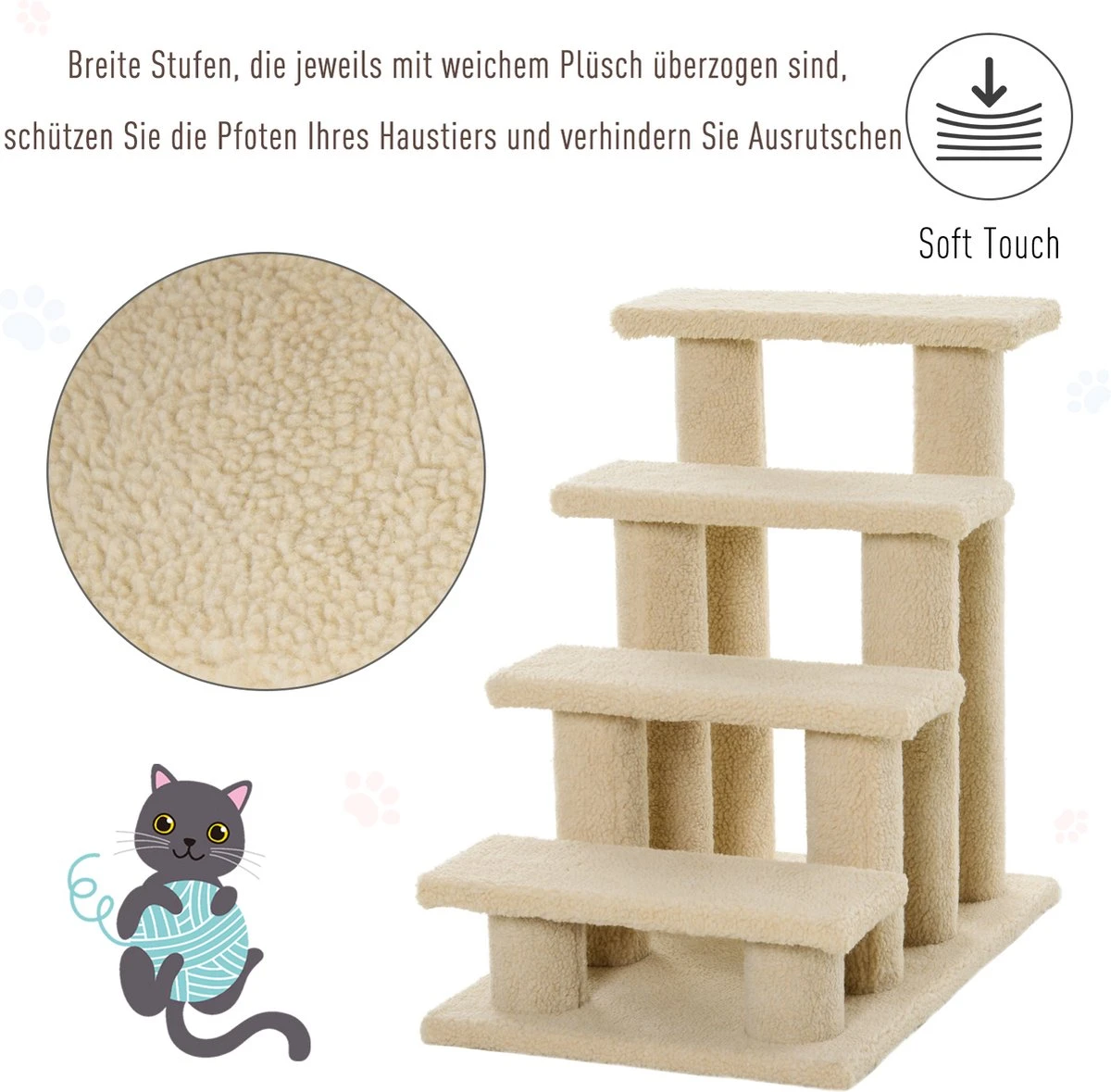 PawHut Dierentrap, Kattentrap, Hondentrap, Trap Voor Katten En Honden, 4 Treden, Beige, 63,5 X 43 X 60 Cm D30-006