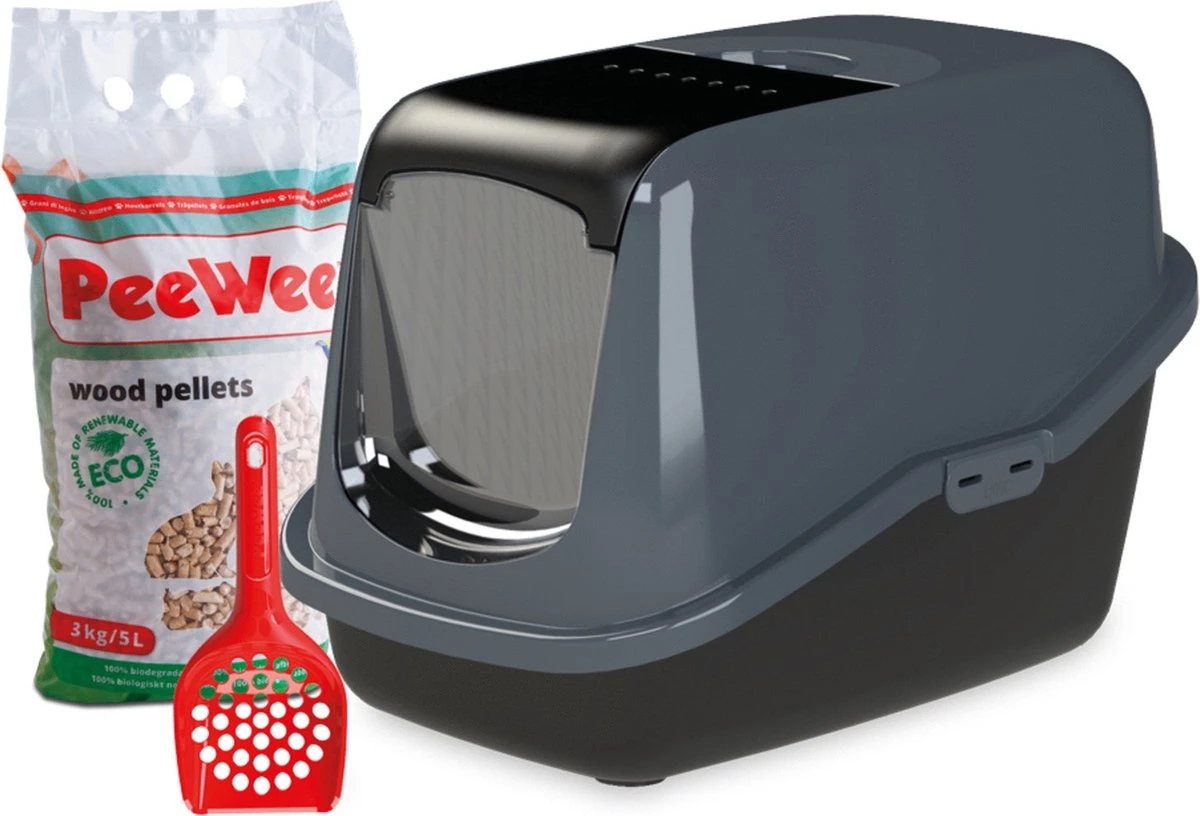 PeeWee Kattenbak EcoHus Startpakket – Antraciet – 56 X 39 X 38,5 Cm