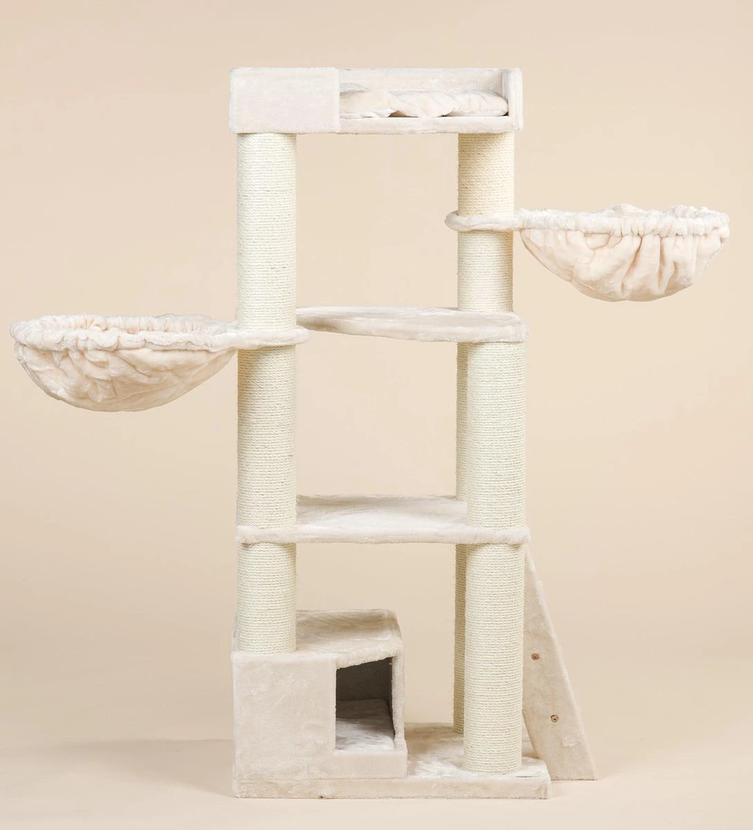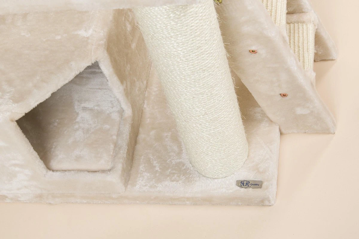 Krabpaal voor Grote Katten Corner Coon Beige voor grote katten is met ca 48KG een zeer stevige RHRQuality krabpaal met extra dikke 12cm diameter sisalpalen met alles wat een kat zich kan wensen.