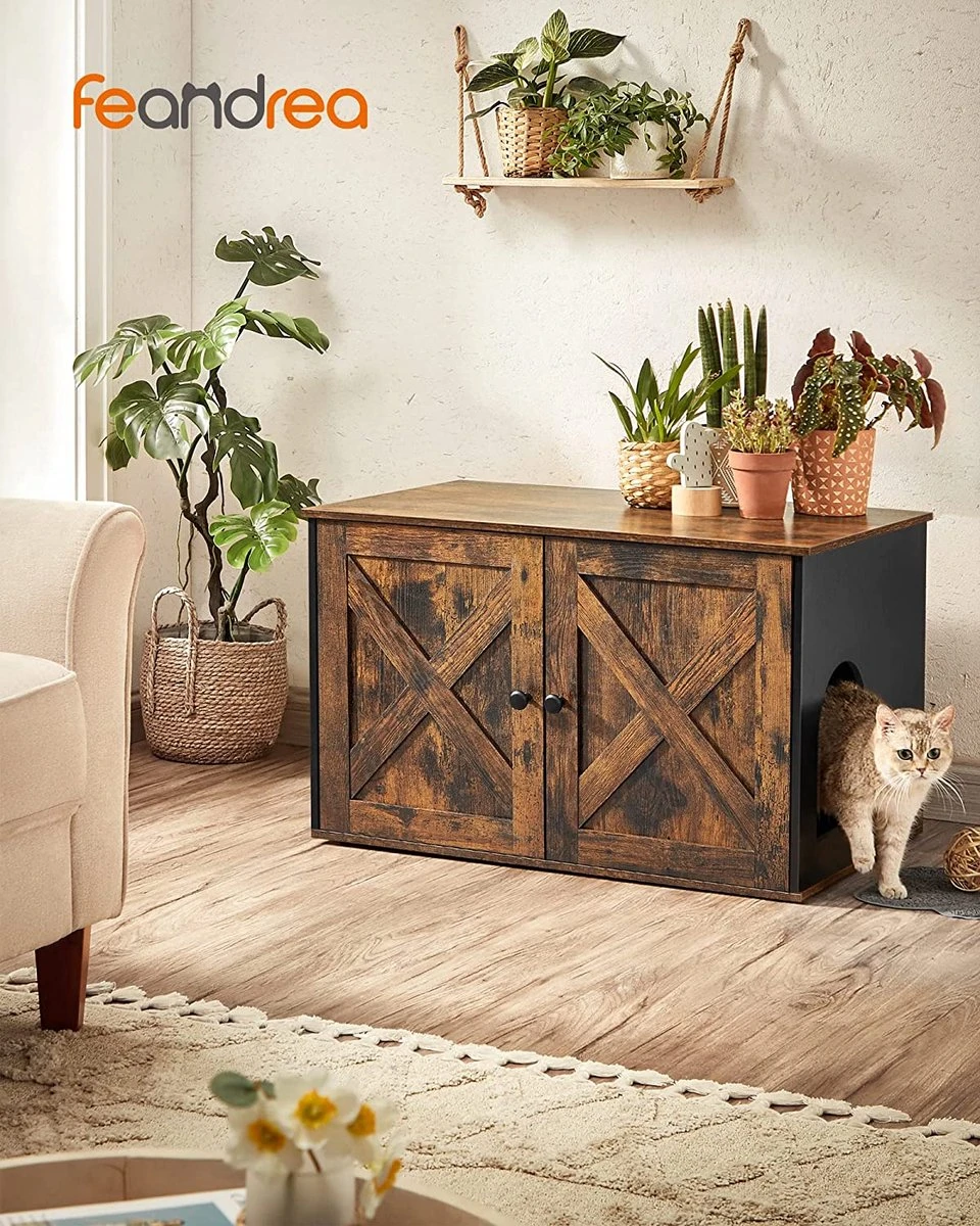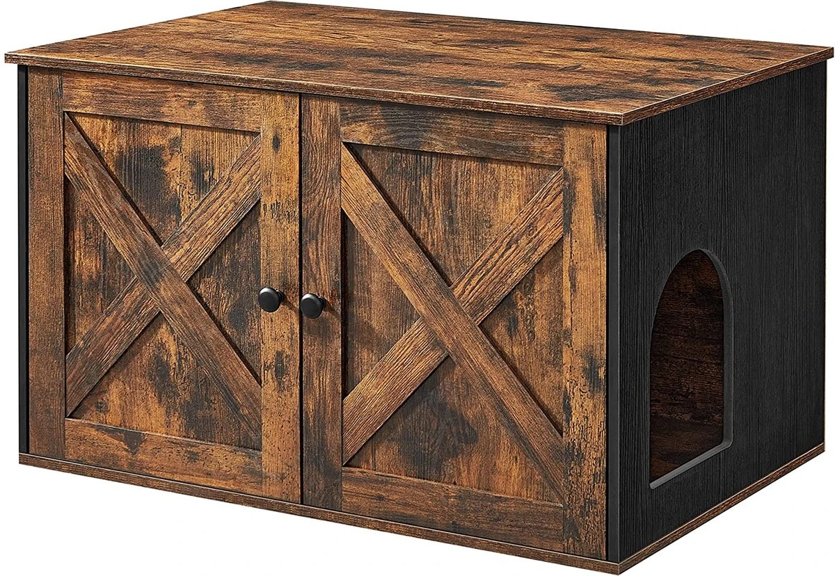 Afvaloplossingen kunnen stinken en lelijk zijn, maar deze kast hoeft dat niet te zijn. Het is een chique oplossing die rommel en geur kan verbergen en uw katten een beetje privacy kan geven.
