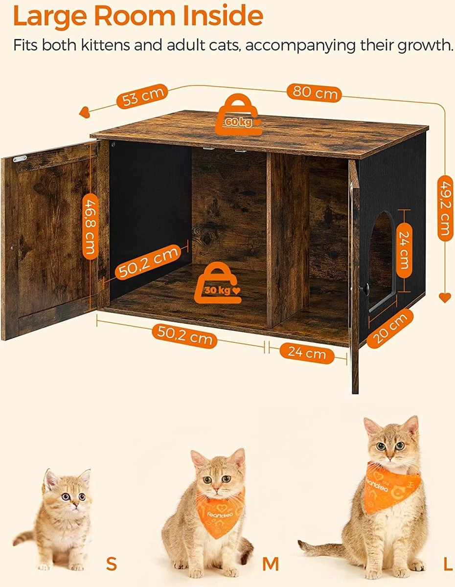 Twee deuren met handgrepen bieden gemakkelijke toegang tot de kattenkast om het strooisel weg te gooien