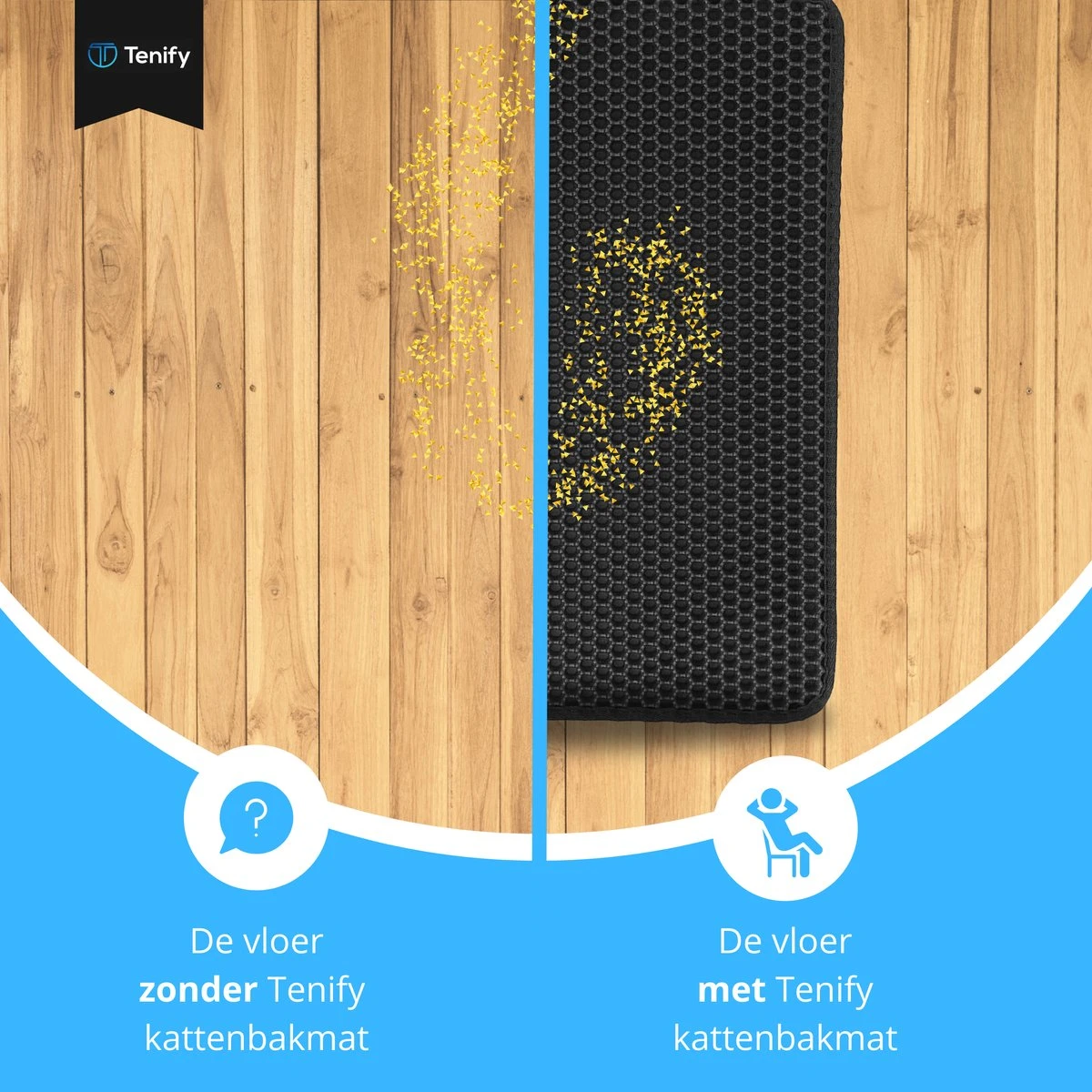 Tenify Kattenbakmat + Extra Kattenbak Schepje – 40 X 50 Cm – Waterdicht – Dubbele Laag – Honingraatstructuur – Uitloopmat – Mat