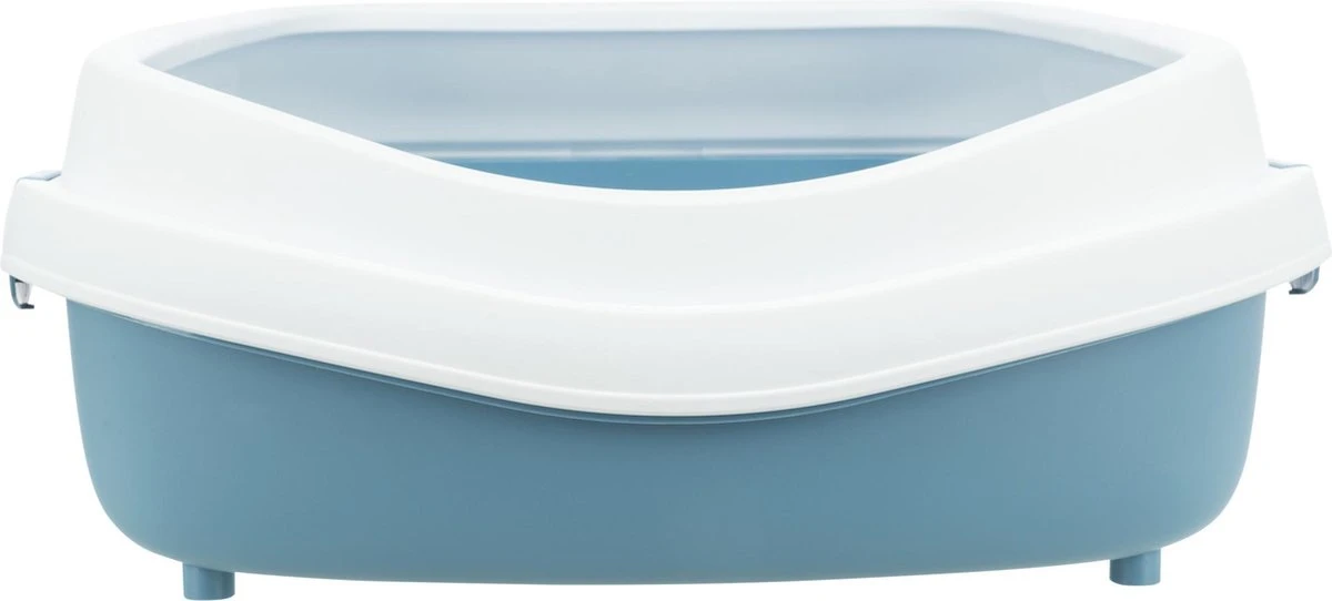 Trixie Kattenbak Primo XXL Met Rand Blauw / Wit 71 x 56 x 25 cm is een open kattentoilet voor grote katten, met afneembare rand met Easy Click-sluitingen.
